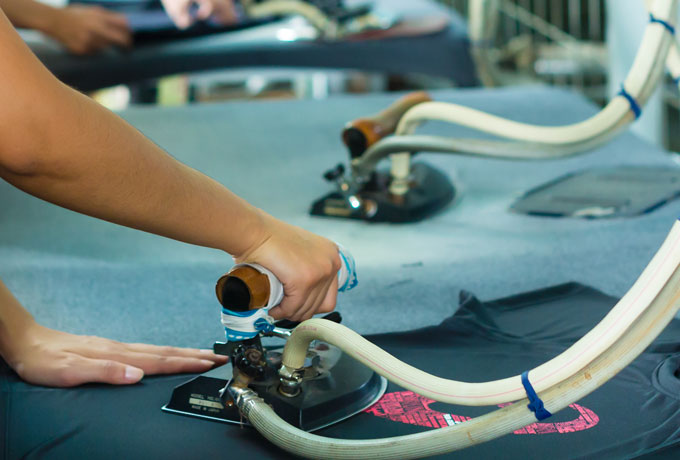 Once the workout clothing is completed, they go through the ironing process to a smooth and presentable finish. Industrial-grade irons are used to smoothen out creases left from the production process.
