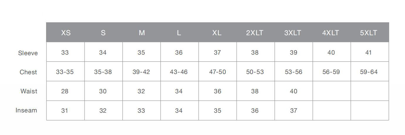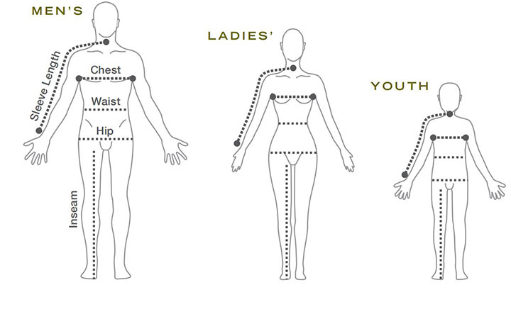 Use this size chart as a guideline when ordering. Be sure to allow enough room for ease of movement.