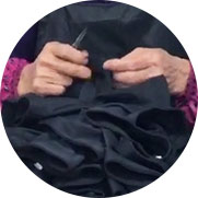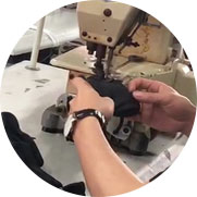 To give the workout clothing a clean and durable finish, our workers trim the threads and the fabric with precision cutting tools.