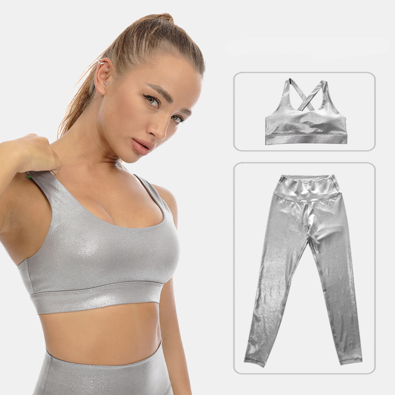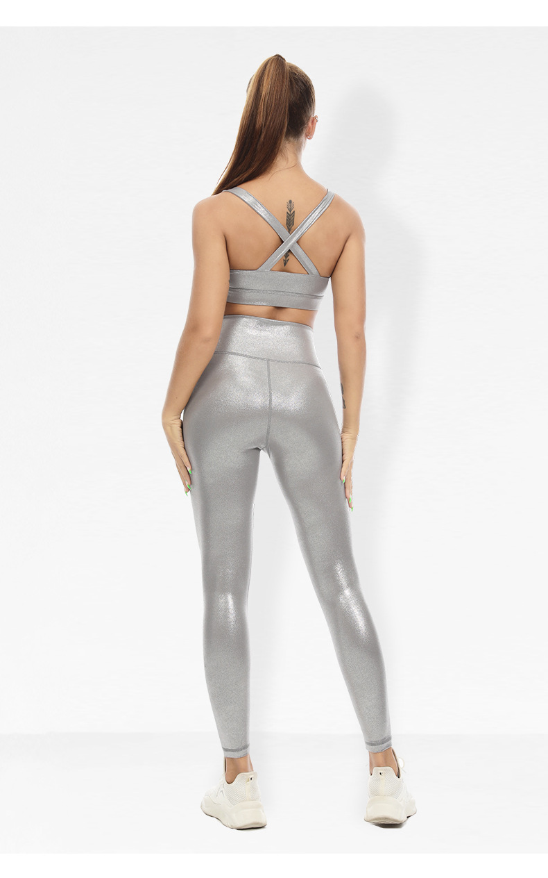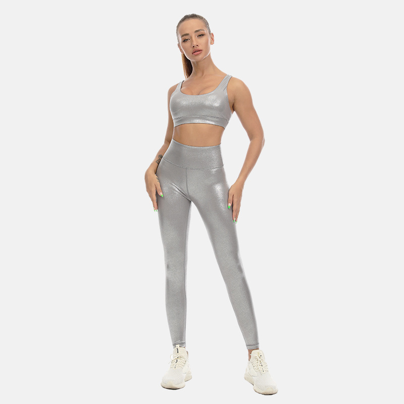 Full Length Women Shiny Silver Pants Sports Leggings High Waist Fitness Glossy Yoga Pants Wholesale